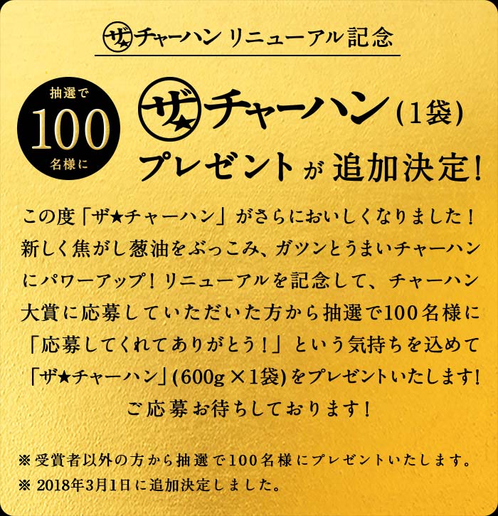 優秀作品には、賞金30万円 +「ザ★チャーハン」6kg